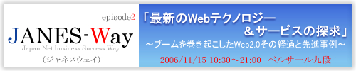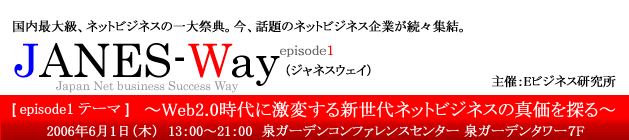 ( 「JANES-Way」Japan Net business Success Way ) と題し、インターネット関連企業が一堂に集まるイベントの開催を決定いたしました。このイベントは、インターネット関連企業が1年に2回(6月・11月)お披露目の場として集結するカンファレンスです。各企業による最新の製品や、サービス、テクノロジーの進歩を肌で感じることができます。